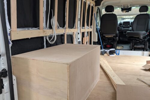 One of the big boxes will include all my electrical components (solar/power controller, converter, charger, alternator, batteries, etc.) while the other will include all the plumbing (water pump, fresh water tank, tankless water heater, etc. ).