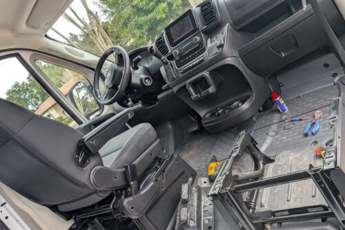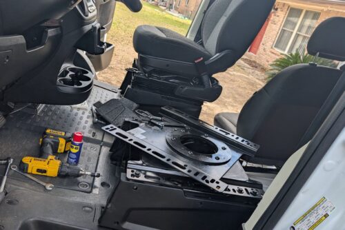 Swivel Seats: Still planning the exact position of the bench seats so once that is done, the main layout can just be completed. While waiting for that, I went ahead and installed swivel seat adapters for both the driver and passenger seats so they will be able to be used with the bench seats along with a swivel table.